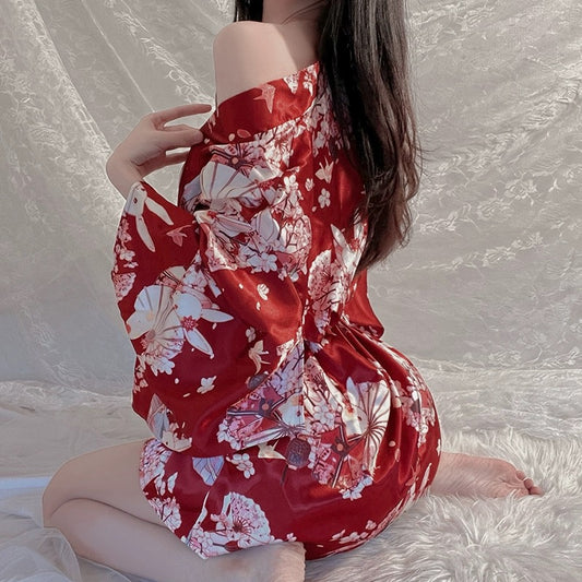 万种风情 - 樱花浴衣纯欲和服套装(炽红色)