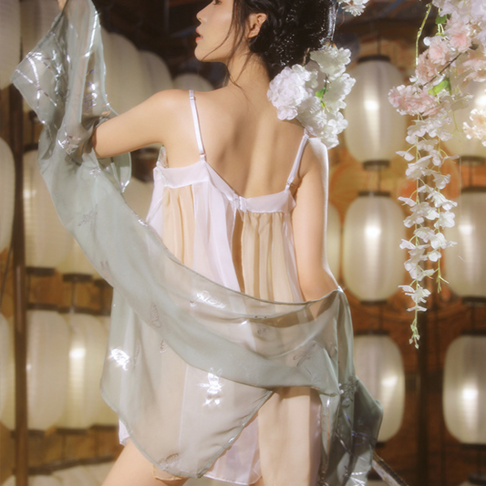万种风情 - 性感国风精品刺绣套装 (莲瓣粉)