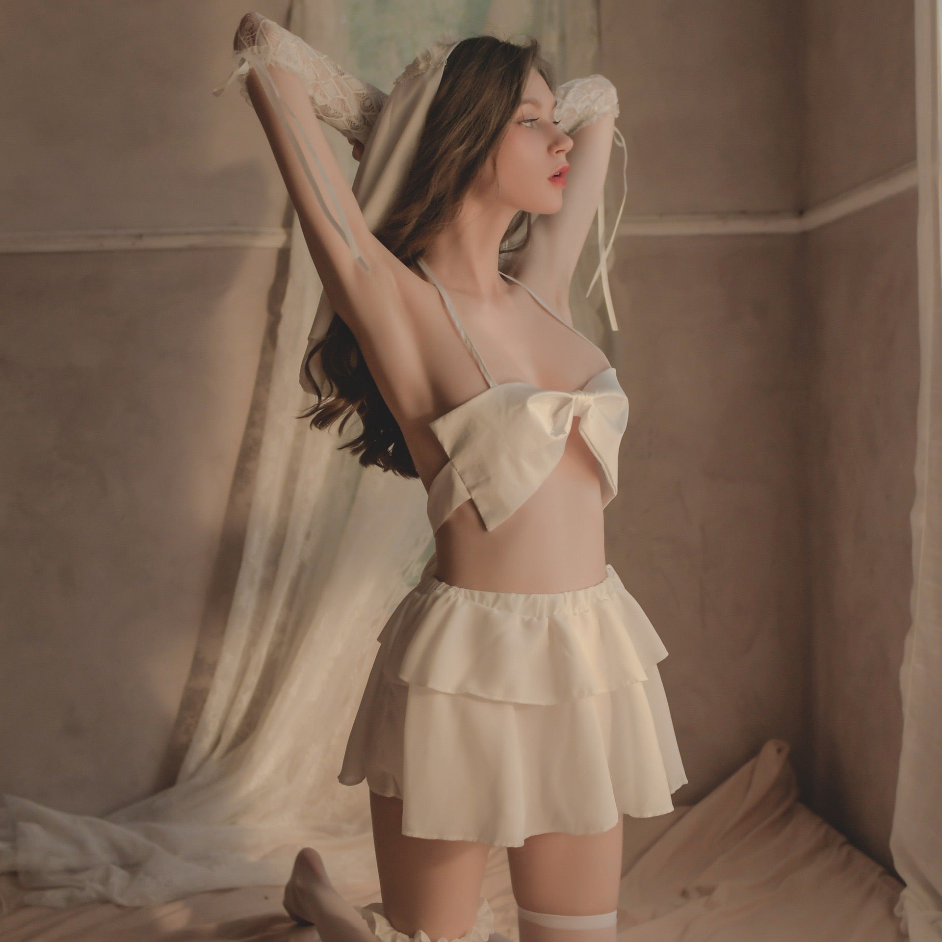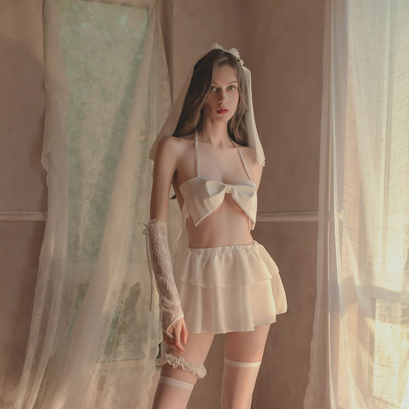 • 套装包含:上衣+短裙+T裤+头纱+手臂套