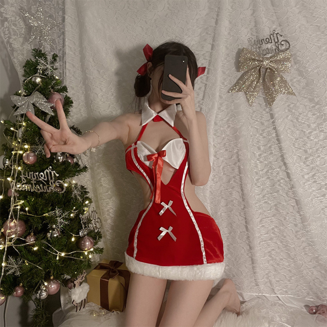 清纯可爱 - 白领结小麋鹿镂空圣诞新年套装
